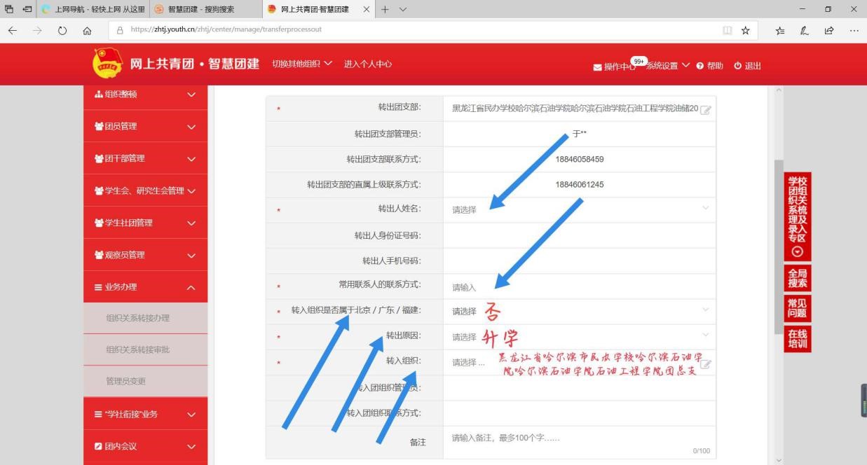 注:智慧团建材料在线上转接后,需携带纸质材料到本校进行线下转接,两者都需要转接,缺一不可。如有问题,请联系QQ:2820314525或595404498。