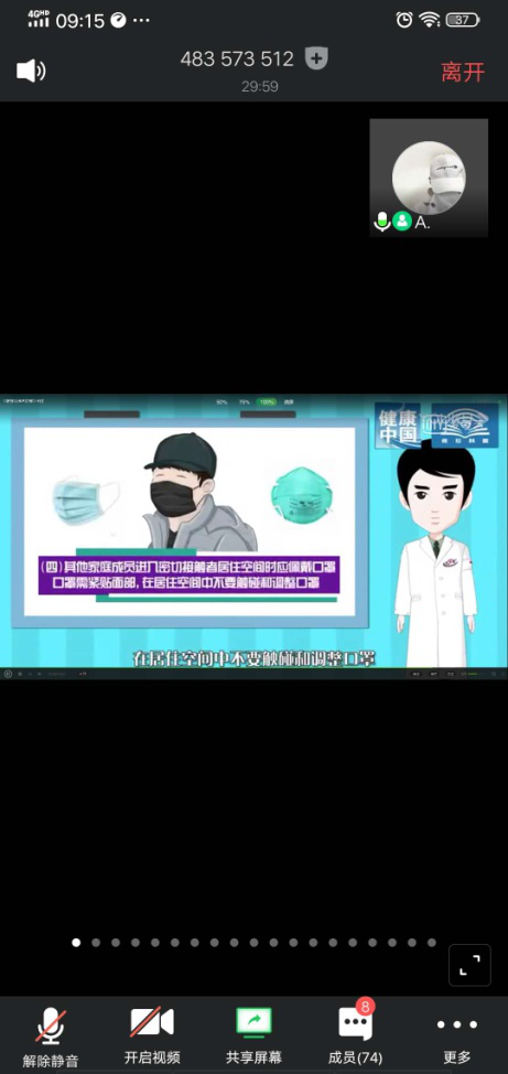 刘鑫老师首先通过视频短片的形式,向同学们进行了关于“新型冠状病毒肺炎的认知与防护”知识的讲解。让同学们对“新型冠状病毒”有所了解,进一步拓展同学们防护病毒的有效方法,提高学生的自我防控意识。视频结束后,就个人防护环节进行了疫情知识问答活动,同学们积极参与,主动发言,各抒己见,使大家都更加深入的了解了新型冠状病毒,确保大家不会因听信谣言而惶恐,不会因缺乏知识而涉险。