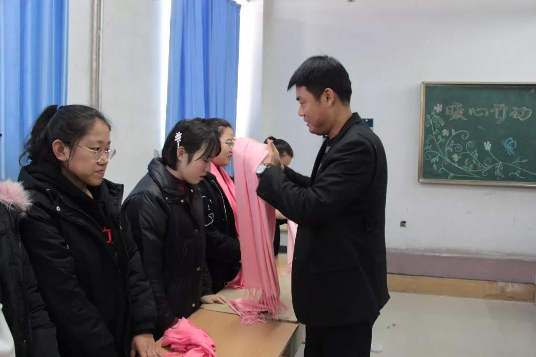 活动中,学工处副处长李长城老师,学生工作处资助管理中心科长赵维政老师、我院副书记及辅导员老师共同为我院贫困生发放了爱心物品。寒冬里的一顶帽子,一个围脖,一双手套传递着浓浓的师生情,也彰显了党和国家及学校对贫困学生的关注和爱心。受助学生代表路同学表示,衷心感谢学校对贫困学生的关心与帮助,日后定当努力学习,回报社会。