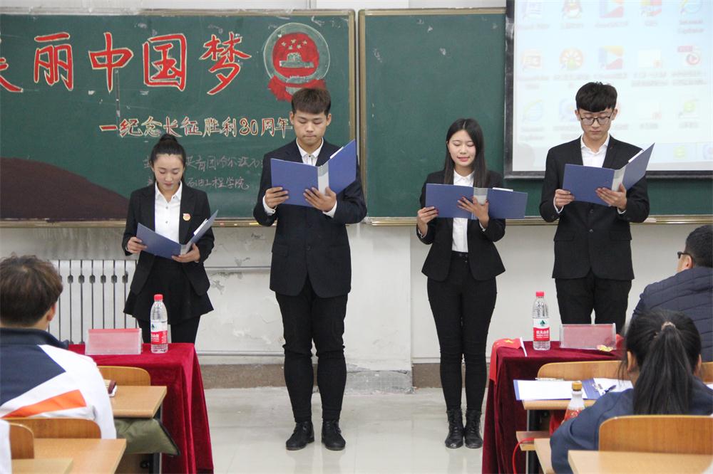 为纪念长征胜利80周年,缅怀革命先烈,继承和发扬长征精神。11月8日晚18点,我院于主教427教室成功举办由校团委主办,石油工程学院承办的“绽放美丽中国梦——纪念长征胜利80周年”主题团日活动。校团委书记王锦石、机械工程学院党总支书记毛雷、石油工程学院党总支副书记康平军、我院2016级辅导员张雪和各二级学院团委主席出席本次团活。