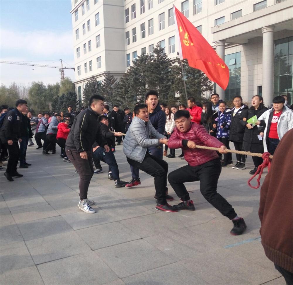 本次比赛共分为拔河和寸地放人两个项目。首先进行的是拔河,在准备阶段双方就已经开始暗暗发劲,我院选手采取了“后坐式”,最后一名同学将绳子缠在自己的腰上,下腰马步,稳如泰山。随着裁判一声令下,我院选手立刻施展“后坐神通”,心中默念一二、一二的节拍,手脚按节奏持续发力,只见红心快速移向我院阵营,对手还在继续挣扎但已无力回天,裁判的哨声宣告了我院的胜利。