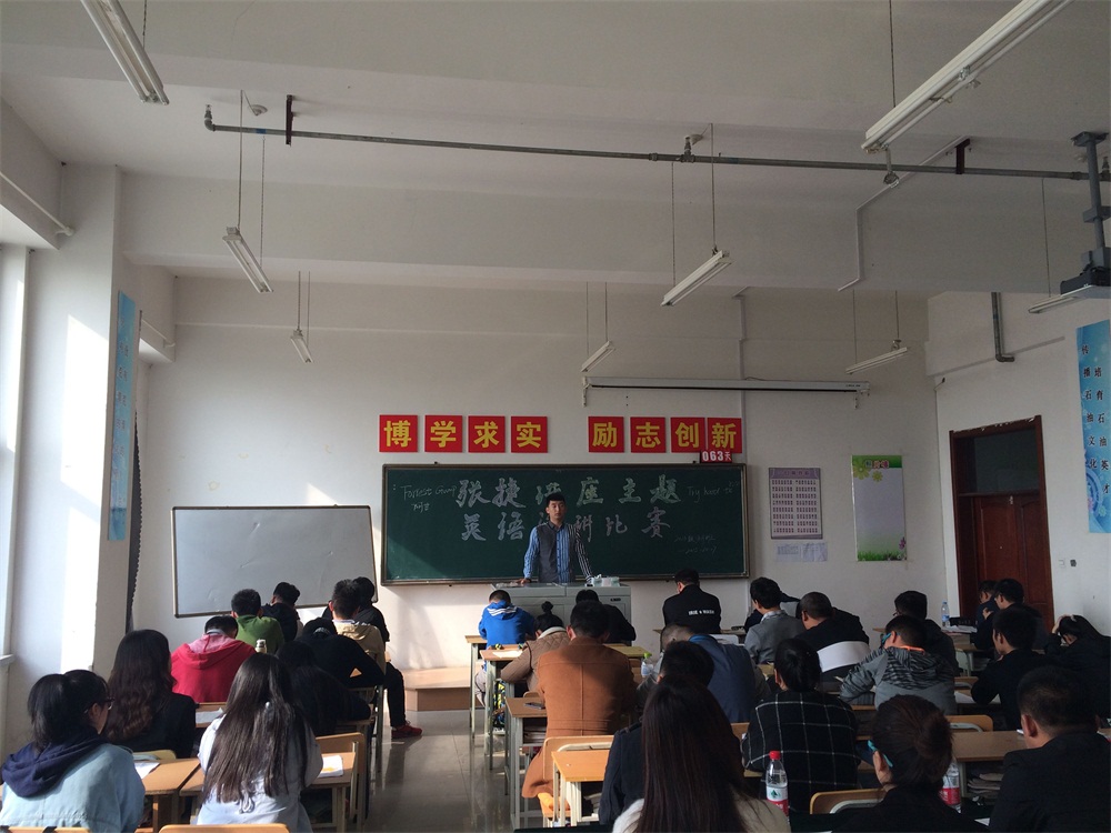 为提高我系涉外班学生的英语水平和口语交际能力,使同学们能够熟练运用英语进行日常交流和简单对话,增强同学们的英语学习兴趣。石油工程系2013级涉外班在学院分管涉外班工作的副院长祁大晟教授的亲自组织下,于10月17日上午8点,在主教511教室成功举办了以“ A special seminar on Prof. Zhang jie’s lecture ”为主题的英语演讲比赛。系主任助理李岳祥、外语系主任助理周瑞以及石油工程技术研究中心主任助理王勇参加了本次活动。