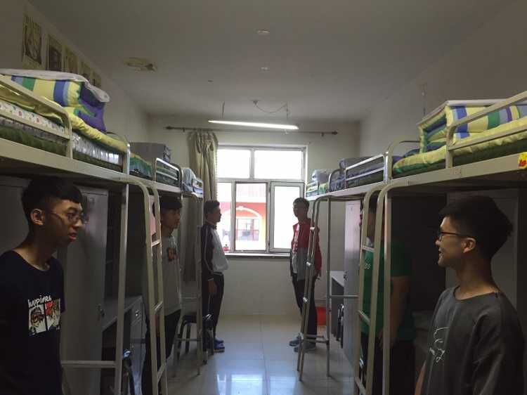 在学生寝室,于老师向同学们了解了大家的生活情况,详细询问了同学们近几天在生活中遇到的问题,并对同学们提出了要求,如不能在寝室内吸烟、喝酒、打牌、喧闹等平时在寝室需要注意的问题。同时对寝室的卫生、用电也提出了明确的要求。同学们纷纷表示会注意并遵守学校的规定。