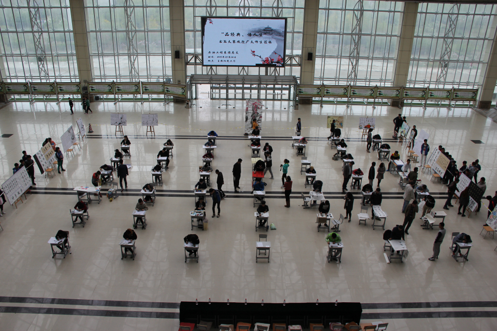 为弘扬中国传统文化,以书法绘画艺术,提高学生审美修养激发学生对中国书画的兴趣与爱好,丰富同学们的课余文化生活。石油工程系特于5月6日中午,在主楼阳光大厅成功举“品经典,悟人生”书画大赛。学院党委副书记、副院长栾敏,宣传部部长顾少宇,学工处副处长张耘,团委书记王锦石以及各系领导出席并参加了本次活动,来自于全院各系共计47名参赛选手进行了当场书画创作。