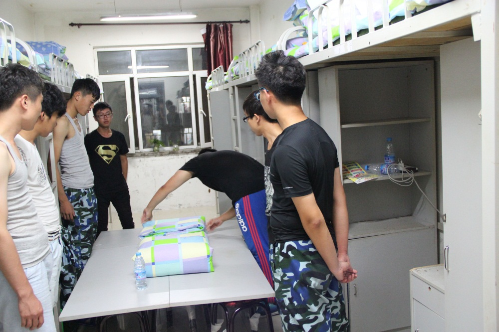 为了培养同学们健康向上的生活态度和整洁卫生的生活习惯,加强校园寝室文化建设和同学们严守纪律的意识。借此军训期间,9月2日晚,石油工程系组织新生内务整理学习。在去年内务比赛中的优秀同学,分为9组走进14级学生寝室,帮助新生学习整理内务,叠军被。此外,石油工程系党总支副书记孙金莹,新生辅导员邱晨明亲临现场指导。