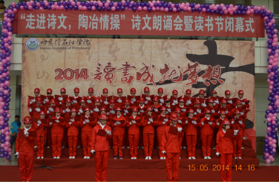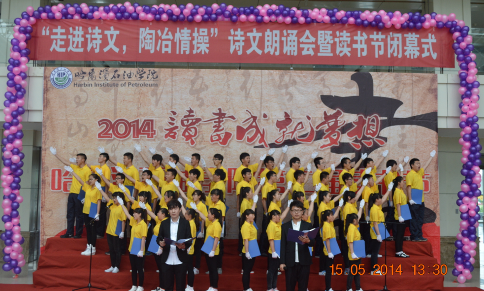 5月15日中午,由院团委举办,石油工程系承办的“走进诗文,陶冶情操”诗文朗诵会暨第二届读书节闭幕式在阳光大厅成功举行。学院各部门领导出席了本次活动并担任评委,各学团组织参加了本次大会。