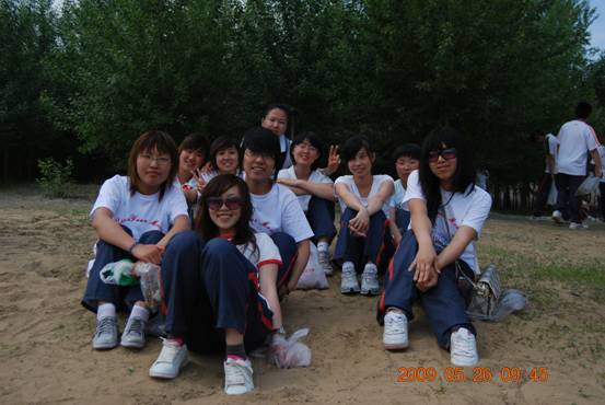 当休息时有些女生的脸上已挂上了汗痕,来时洁白的衣服已变了颜色,鞋子上也粘满了灰土,但在她们脸上看不到一丝的疲倦,更多的是骄傲、自豪的神情。