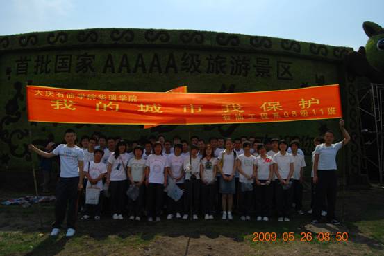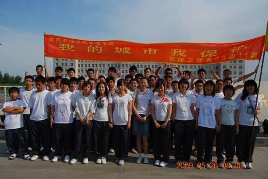 为了唤起人们保护环境的意识,石油工程系08级11班的学生自发的组织了一次名为“我的城市,我保护的”的公益性活动。