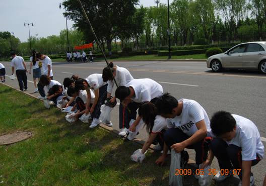 同学每到一个地方,都会猫下腰认真的寻找垃圾,生怕会有漏网之鱼。阳光虽然炙热,但是和同学们为城市环保作贡献的热情相比又算得了什么呢?