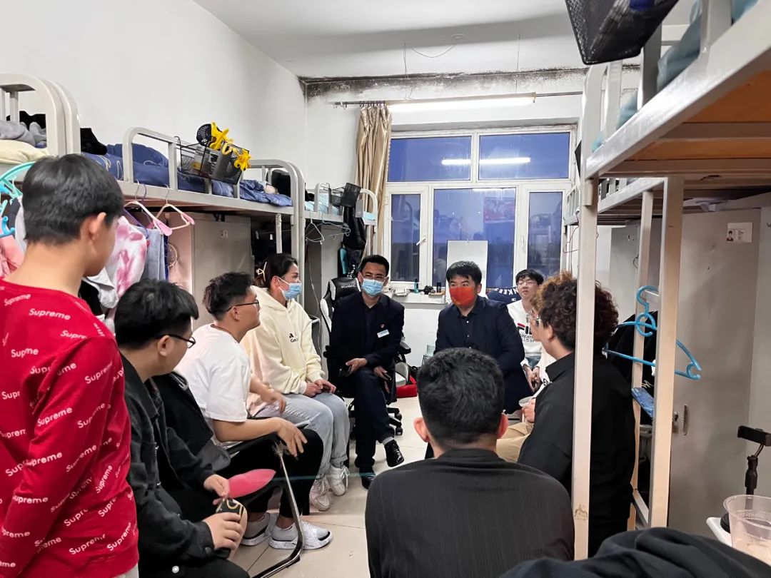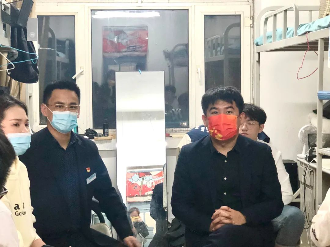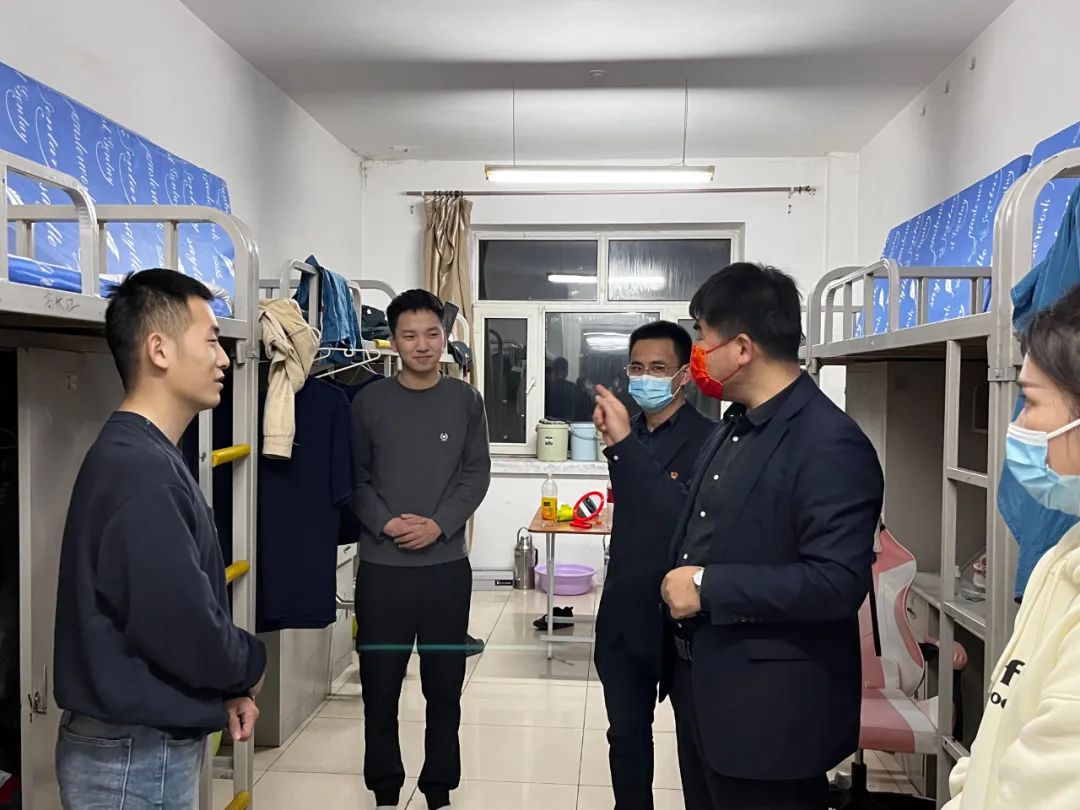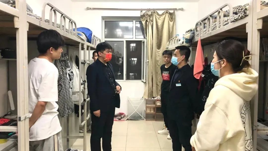 为深入了解疫情防控期间学生的线上学习情况和生活状况,掌握学生学生生活诉求,做好心理疏导。4月30日晚,我院院长李岳祥,党总支书记刘雁春,在21级辅导员王娜的陪同下深入走访各年级学生宿舍,暖心关怀线上学习。