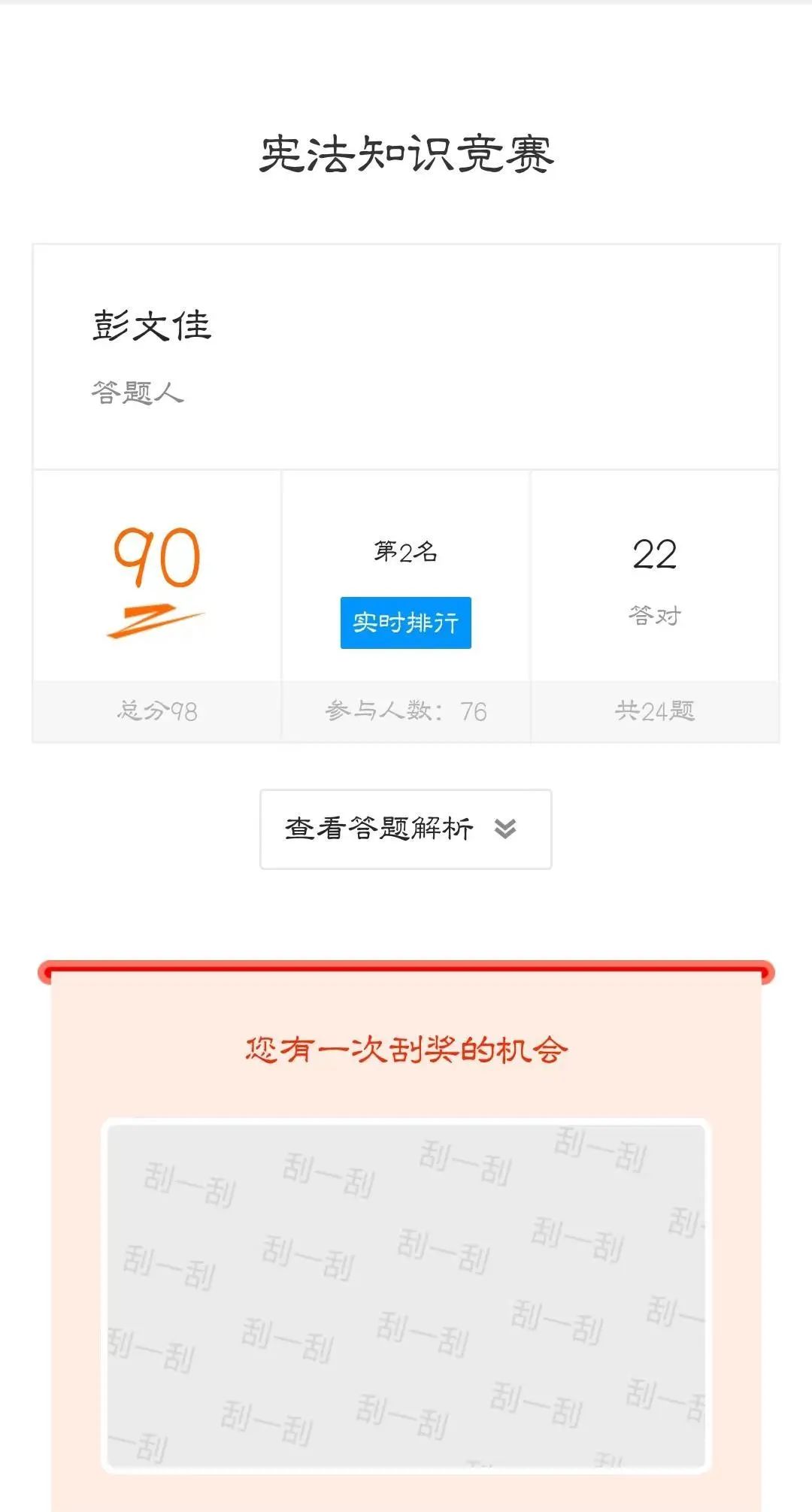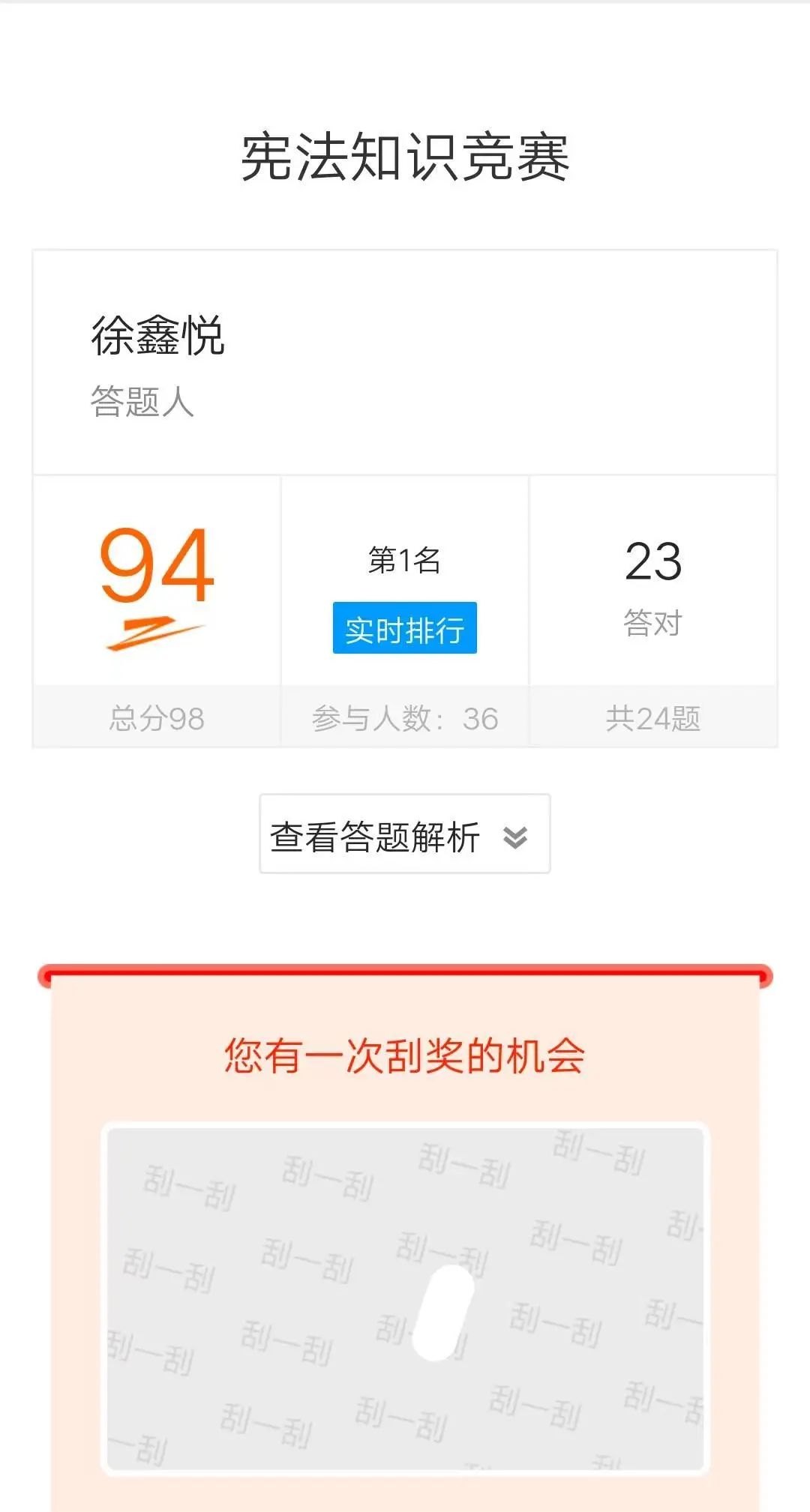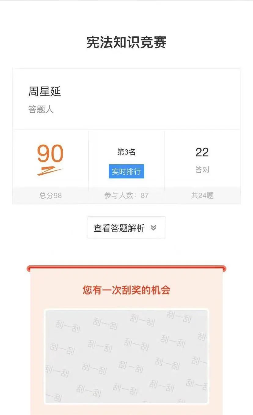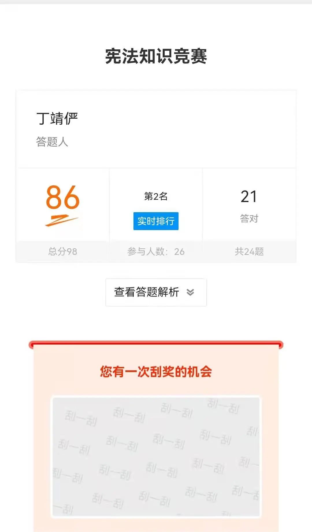 活动中,学生积极参与,通过扫描二维码进行答题,活动题目设有选择题、共25道题,内容丰富、涵盖知识面广。通过线上的知识竞赛,使大家了解相关法律,填补对法律认识的空缺,从而传递宪法在国家发展,社会中的重要性,同时让学生明白在今后受到危险和伤害时拿起法律的武器来保护自己,捍卫自己,通过法律途径更好地保护自己。