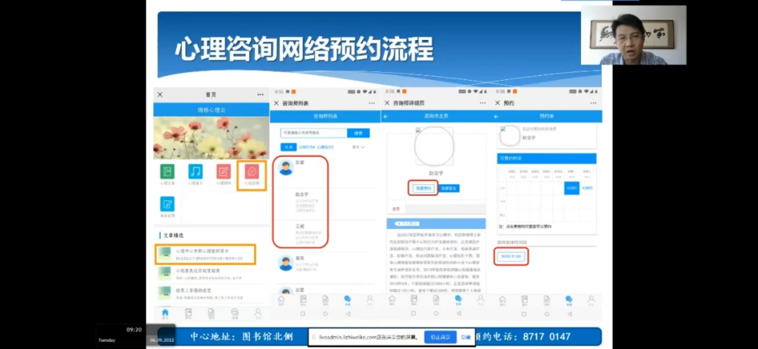会议伊始,赵全宇老师介绍了学校心理咨询室的概况,细心的向同学们讲解如何在学校进行心理咨询预约等,说明了心理中心在大学生活中的重要性,使同学们对心理健康问题有了新的认知。
