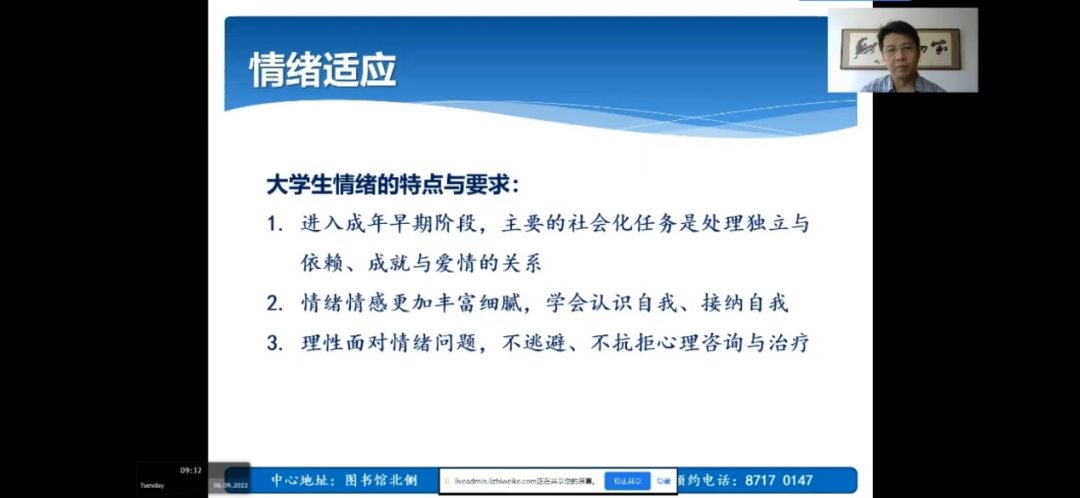 为进一步提高大学生的心理素质,促进大学生的身心健康和谐,宣传普及心理健康知识,提高校园心理危机的预防,保障同学们的身心健康,9月6日,我院开展心理健康讲座,此次讲座由大学生心理健康教育咨询中心教师赵全宇主讲,全体2022级新生参加。