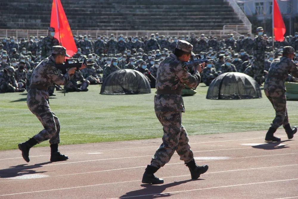 开幕式上,教官们以小队的形式,进行擒拿、格斗、匍匐前进、突击等表演来鼓舞大家的士气。