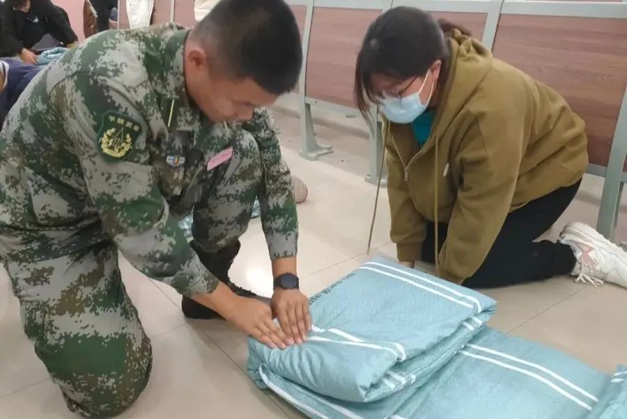 我院党总支书记刘雁春和2022级辅导员老师尹航在军训场地陪同大家,与大家亲切交流,确保第一时间了解了学生们的军训情况。