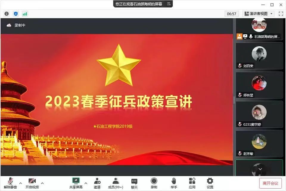 为强化学生国防观念,号召适龄青年投身军营,2022年12月5日,我院召开2023年春季征兵政策宣讲动员大会,会议由2019级辅导员郭海明主持,2019级全体学生参会。