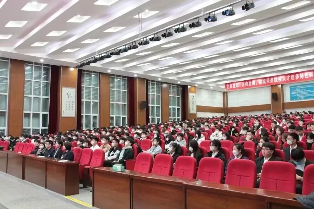 正式开始前,刘书记同与会的全体师生再次重温了林立民书记主讲的《用真心 悟真理 践真行 把党的二十大精神学懂弄通做实》为题的宣讲视频,带领大家对党的二十大精神进行了深入学习。随后,刘书记结合林书记所讲内容,又结合实际为师生解读了党的二十大的新观点、新论断。并结合自身学习体会深入解读了党的二十大精神。他讲道:要将党的二十大精神同学习铁人精神相结合,要坚定不移听党话、跟党走;同时怀抱梦想又脚踏实地,敢想敢为又善作善成;党和国家赋予青年的责任与使命,更需要学生通过明确自身素质能力培养目标,立志做有理想、敢担当、能吃苦、肯奋斗的新时代好青年,从思想、学习、活动、生活、健康、心理、网络等方面,将实现伟大中国梦的宏愿落实到行动中。
