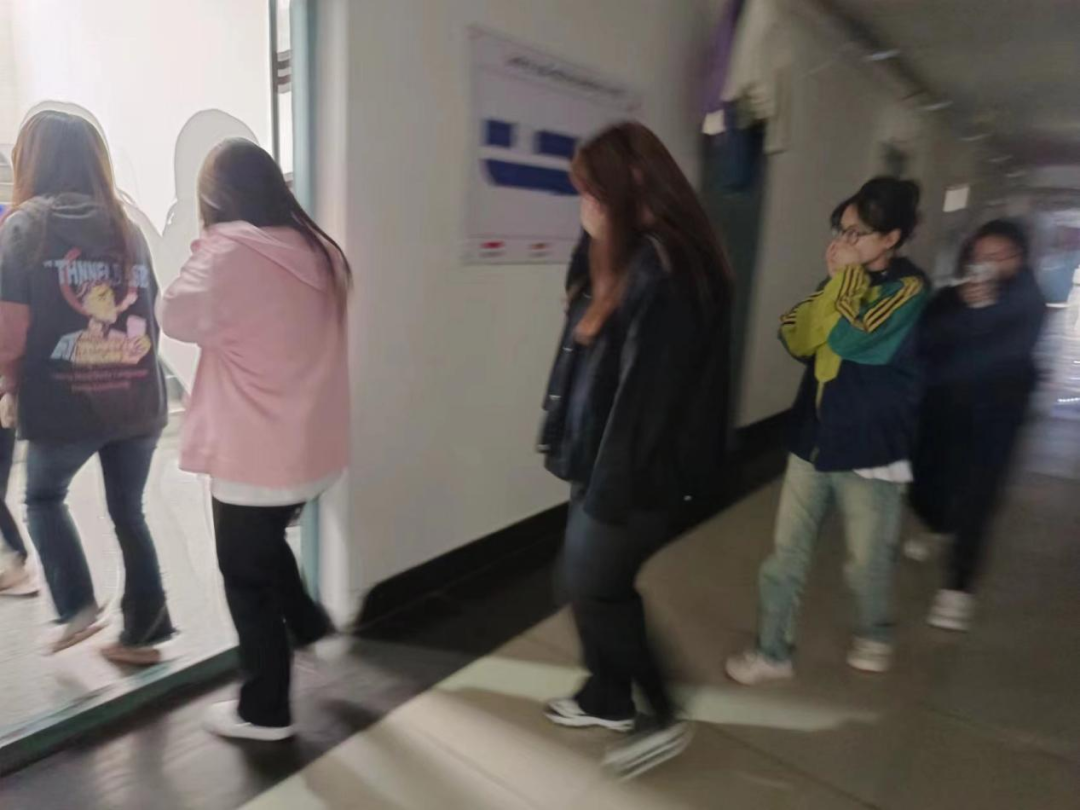 伴随着警报声的响起,演练活动开始啦!同学们立即用手和毛巾捂住口鼻,弯腰快速撤离教室,依照就近的逃生路线,有序地向操场空旷地带疏散,到达指定安全地点后,各班迅速维持好秩序,清点人数,并及时向负责人汇报安全撤离人数及灭火情况,整个疏散演练过程既紧凑又有序,没有丝毫的慌乱,达到了预期的效果。