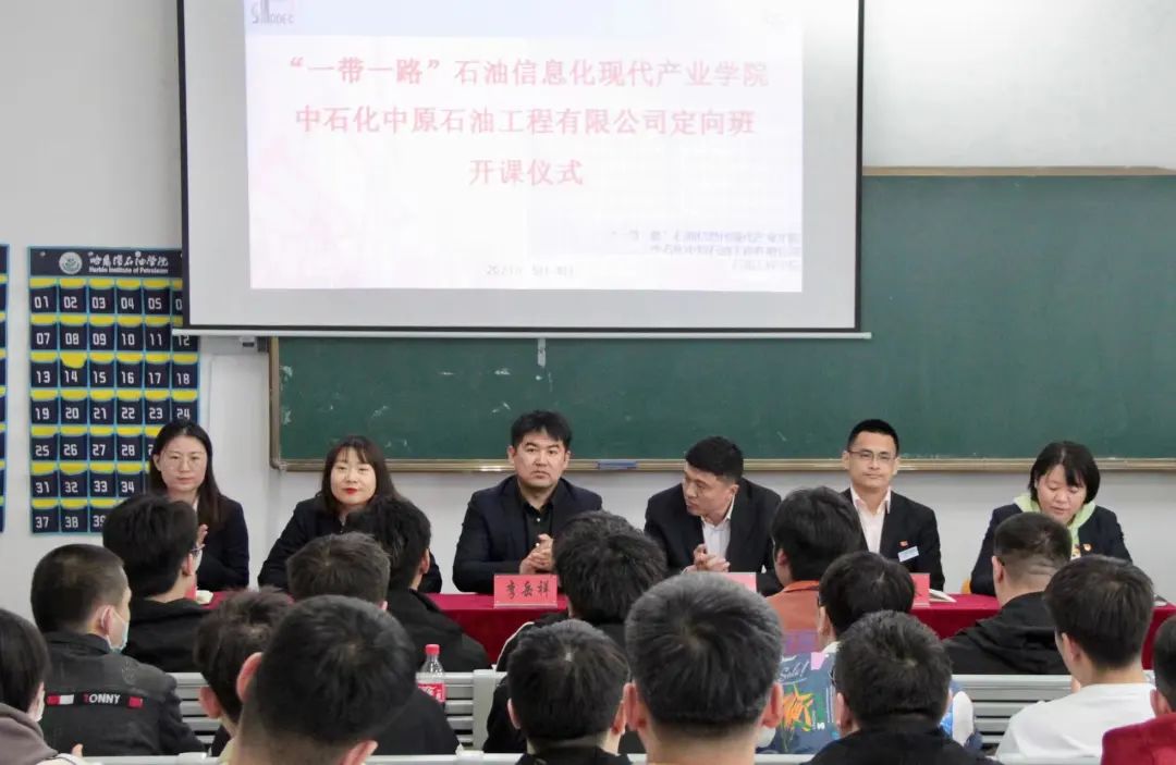 为加强校企合作,培养具备职业素质及技能专精的应用型人才,充分实现高质量就业。5月8日17:00,伟德bv国际体育石油工程学院与中石化中原石油工程有限公司钻井二公司共建“一带一路”石油信息化现代产业学院定向班开班仪式在主教学楼701召开,校党委副书记&副校长冯研、石油工程学院院长李岳祥、党总支书记刘雁春、副院长朱砂、教学秘书赵昕、党总支副书记&中原定向班班主任张雪,以及定向班全体学生参加本次开班仪式,仪式由党总支副书记张雪主持。