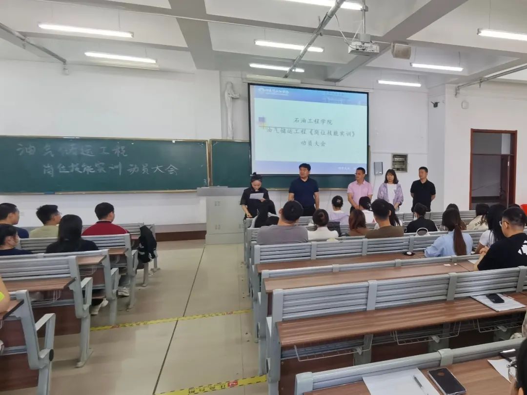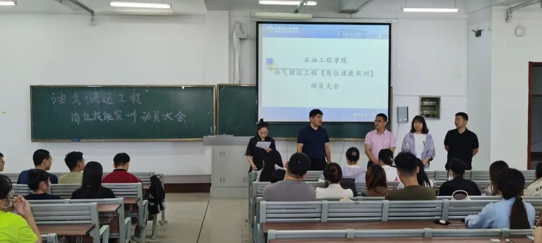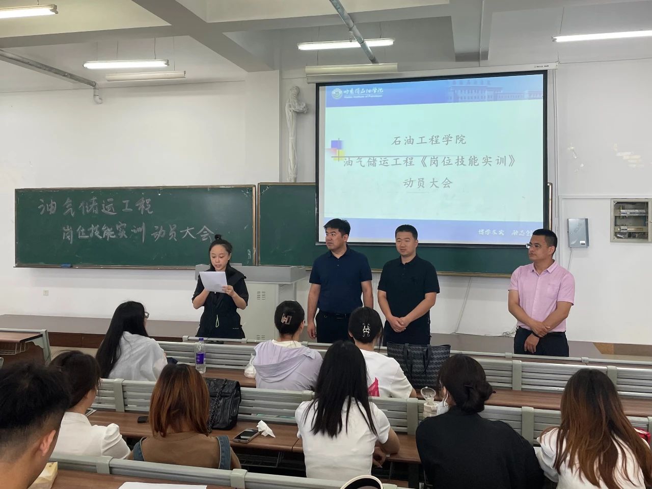 纸上学来终觉浅,绝知此事要躬行。为达到知行合一,理论与实践相结合,最大程度的激发学生的实践能力,加强学生的就业能力,为学生高质量的进入综合实习做好铺垫,石油工程学院于2023年6月5日成功召开油气储运工程岗位技能实训动员大会。出席本次会议领导老师有石油工程学院院长李岳祥,党总支书记刘雁春,党总支书记刘雁春,副院长朱砂,系主任于子丰,专业教师庞馨竹,2020级油气储运全体学生出席本次活动。