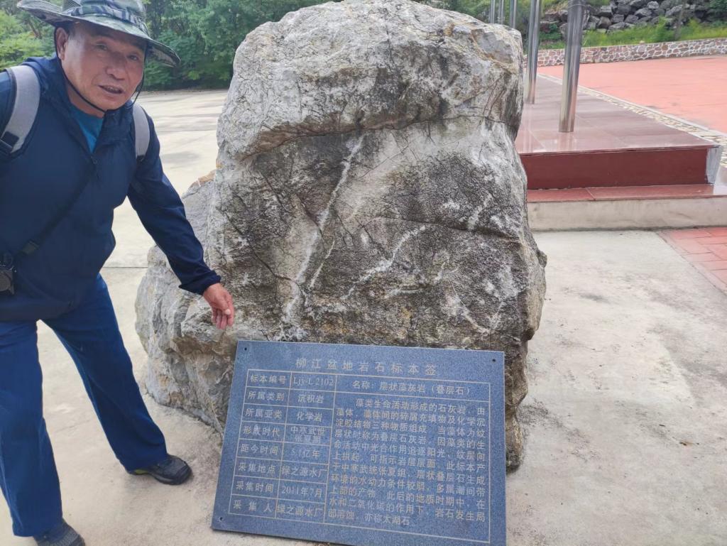 来到今天第二个地质观测点:水厂。水厂内含白云岩夹杂鲕粒灰岩、砾屑灰岩,可见节理构造,并能判断出地层运动方向:前行。可见寒武纪张夏组灰岩,内含藻类化石。在水厂周围可见背斜构造。