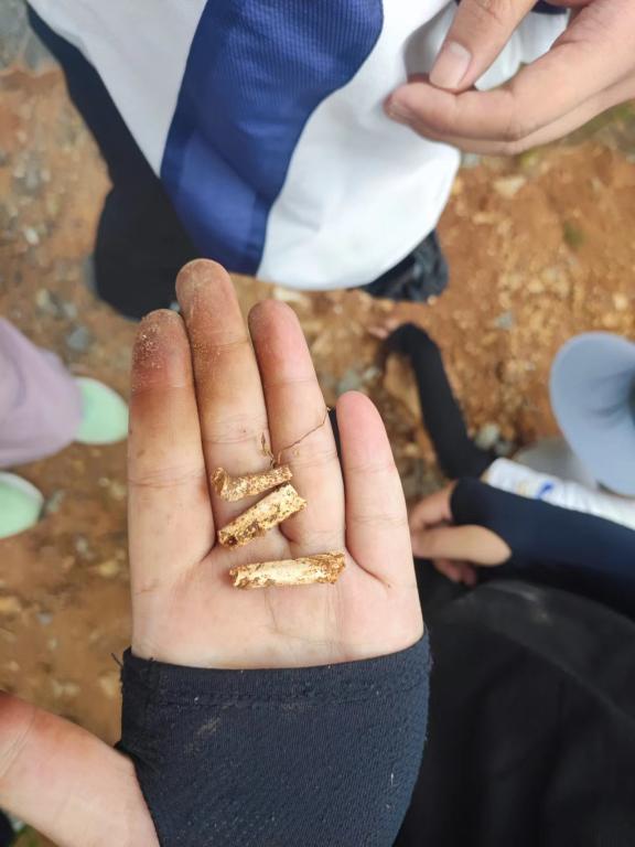 今日实习路线是山羊寨-水厂-吴庄。同学们一大早在基地集合坐车前往实习点,听说今天的行程中姜老师要带大家去寻找“宝石”,同学们都十分期待,客车到达基地就迫不及待的上了车出发前往实习观察点。