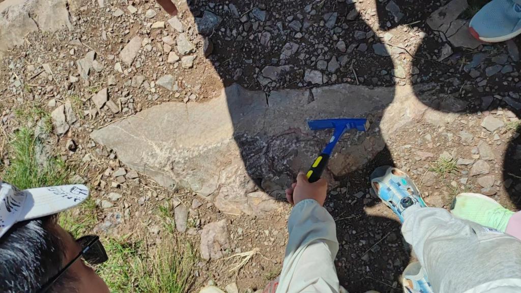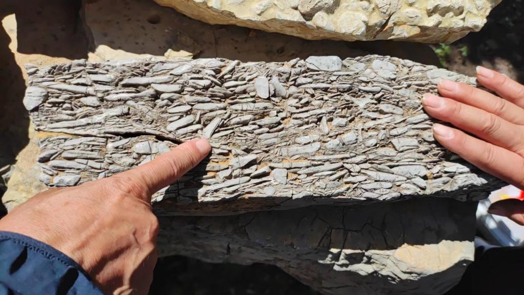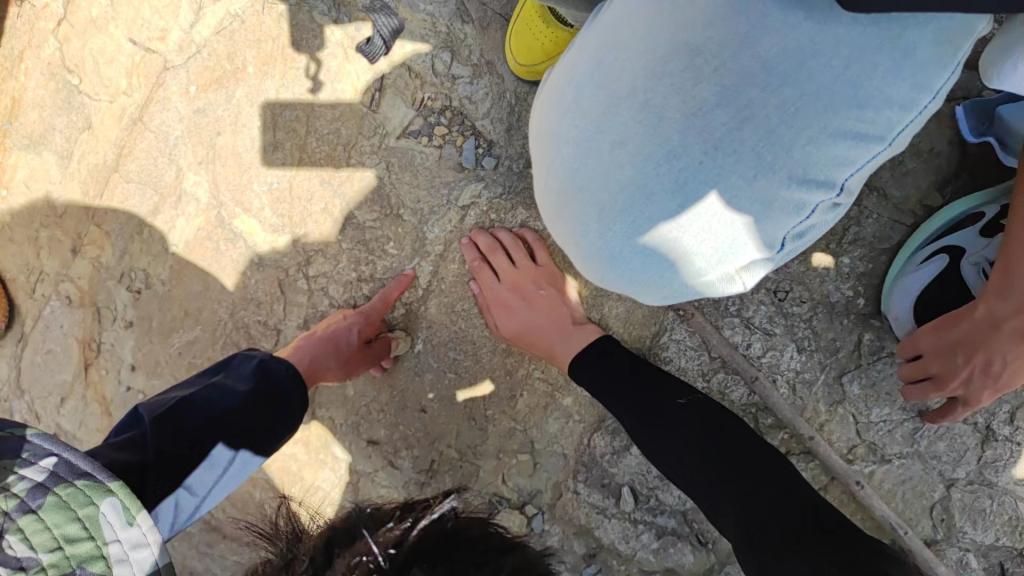 来到今天第六个地质观测点:水库旁。此处为古生物化石观测点,可见大量三叶虫化石。
