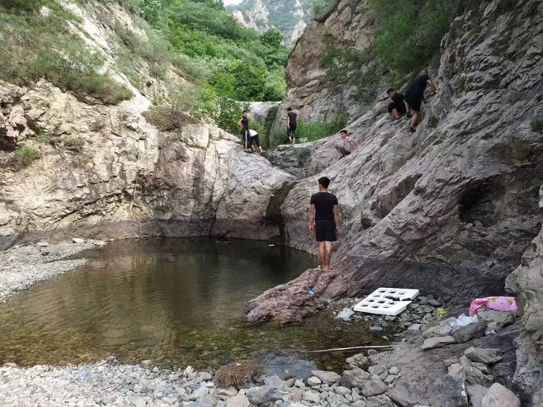 到达老龙潭可观察瀑布跌水的地质作用,老龙潭五个相连的水潭之间没有路,要想而上寻找源头,必须从侧面爬上陡峭的山崖,为了安全考虑仅近距离观察了第一潭,远距离观察第二潭。