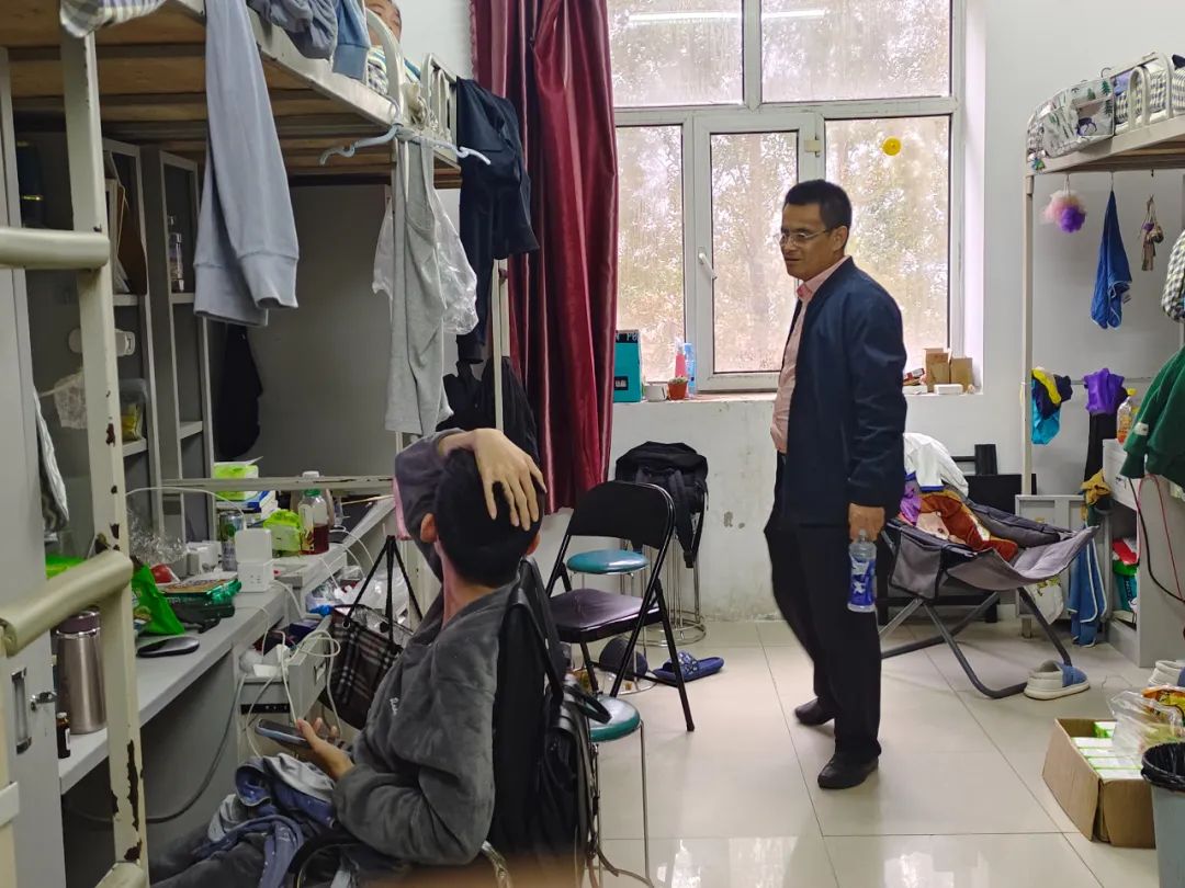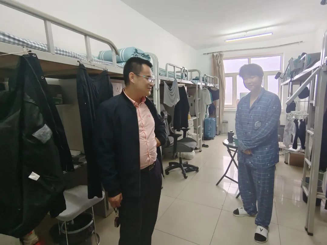 中秋国庆假期已过半,为进一步落实以铁人精神树人的根本任务,关心关怀我院双节假期留校学生在校情况,10月3日,石油工程学院党总支书记刘雁春对我院假期留校学生宿舍进行走访慰问,与同学们“聊近况、话学业、谈安全”,送上节日的关心与祝福。