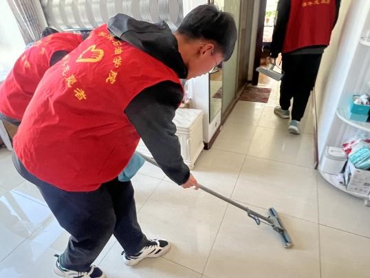 活动进行时,志愿者们来到城西社区张奶奶的家里,张奶奶对我们的到来感到非常的欣慰欢喜。志愿者们开始陆续动起手来,给老人打扫房间、擦桌子、擦玻璃、拖地、教老人做保健操。打扫干净后志愿者们与老人促膝围坐,面对面地亲切交谈,认真倾听老人们在家中的生活状况。在倾听过后志愿者们告诉张奶奶天气多变外出时要及时添衣,平时购买生活物品和食物时更要注意来往车辆及人身安全。志愿者们还为老人准备了各种故事书和杂志,陪伴老人一起阅读,分享故事中的乐趣。志愿者们用朴实而真诚的行动表达着对老人们的关爱,气氛一下子热闹起来,屋内一片欢声笑语,暖意融融。