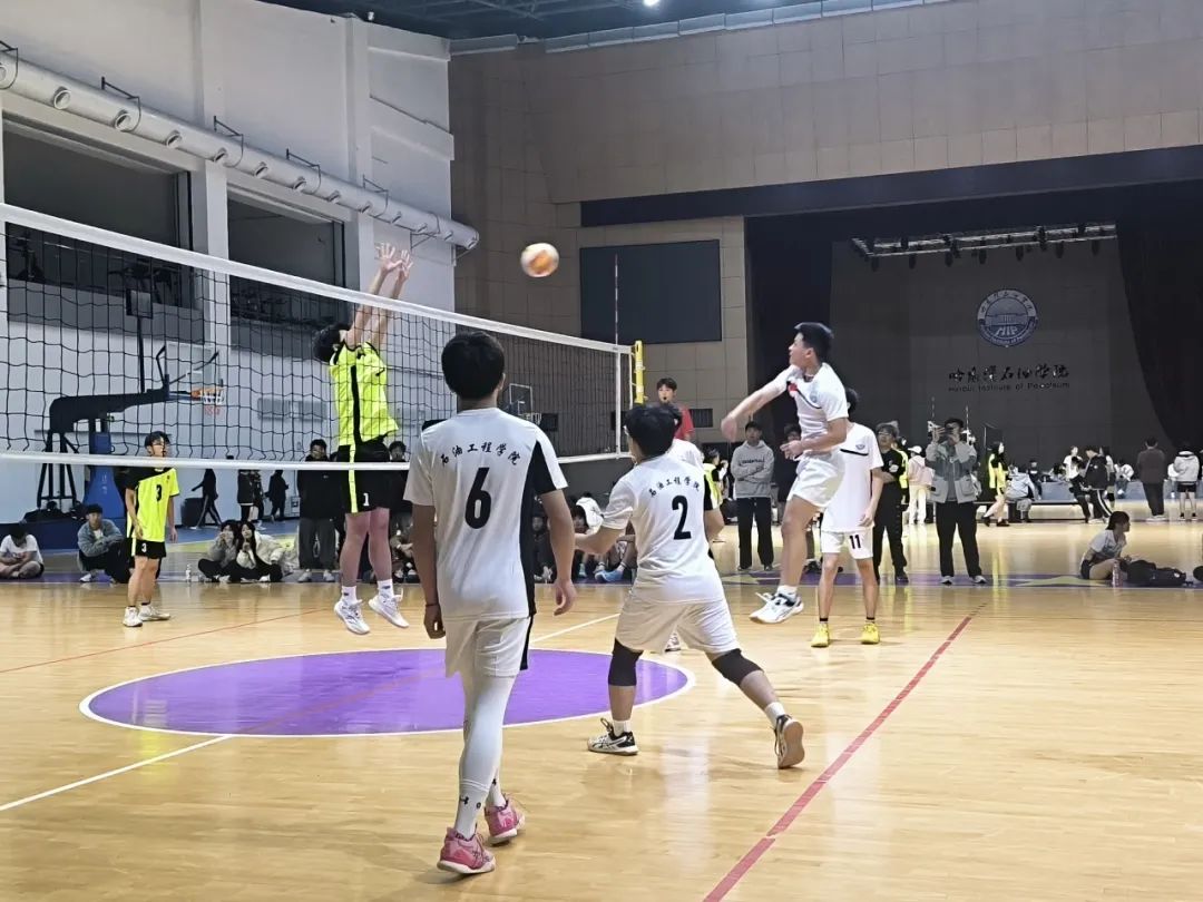 赛场上,成员们配合默契,球来球往间尽显竞技风采,观众们热情互动,助威呐喊声响彻整个场馆,我院石油学子以奋勇争先、敢于超越的时代风采,让铁人精神在排球场上燃情绽放。