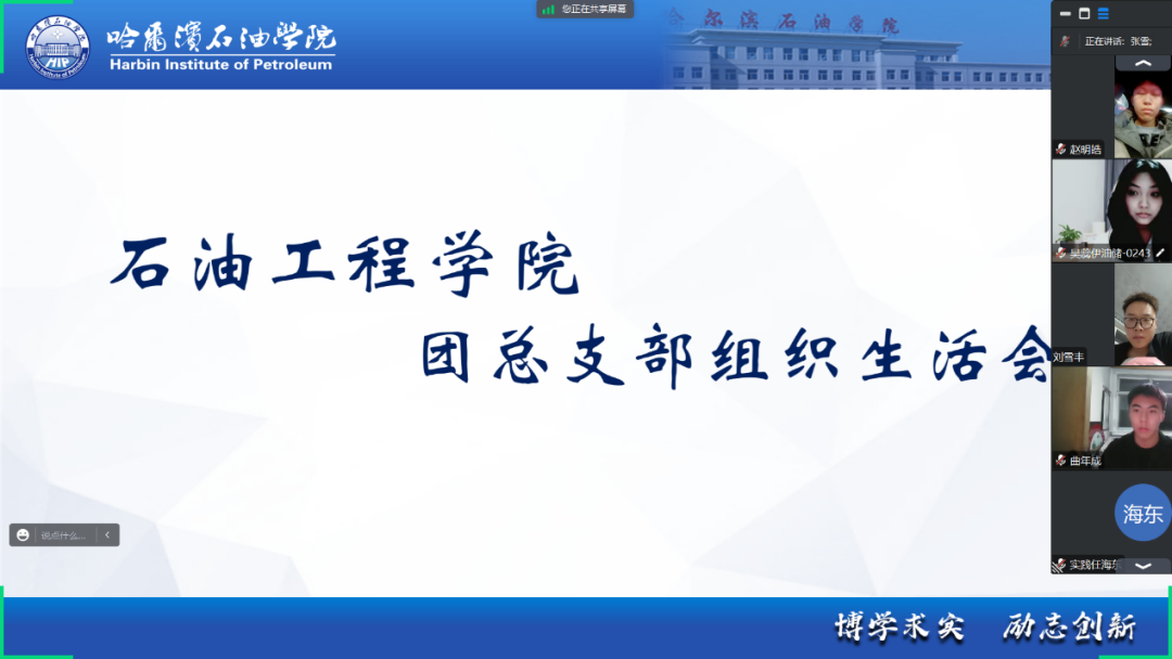会议第一项由石油工程学院分团委学生团总支副书记邢佳宇报告团员和青年主题教育开展情况,通报团支部委员会查找不足等情况。