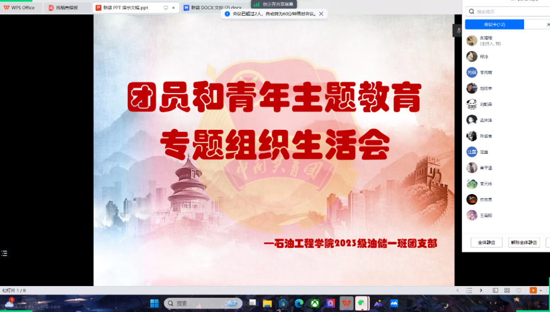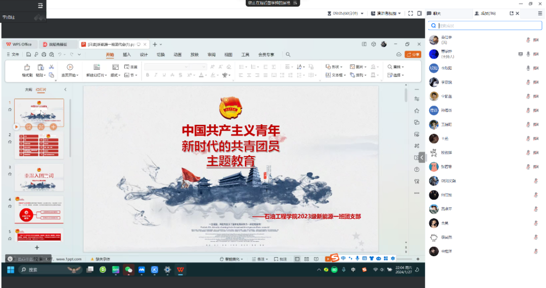 1月28日石油工程学院团总支部开展主题教育专题组织生活会,本次会议由石油工程学院学生团总支副书记扈宁彤主持,石油工程学院团总支书记张雪、石油工程学院分团委各部部长、部员共同参会。