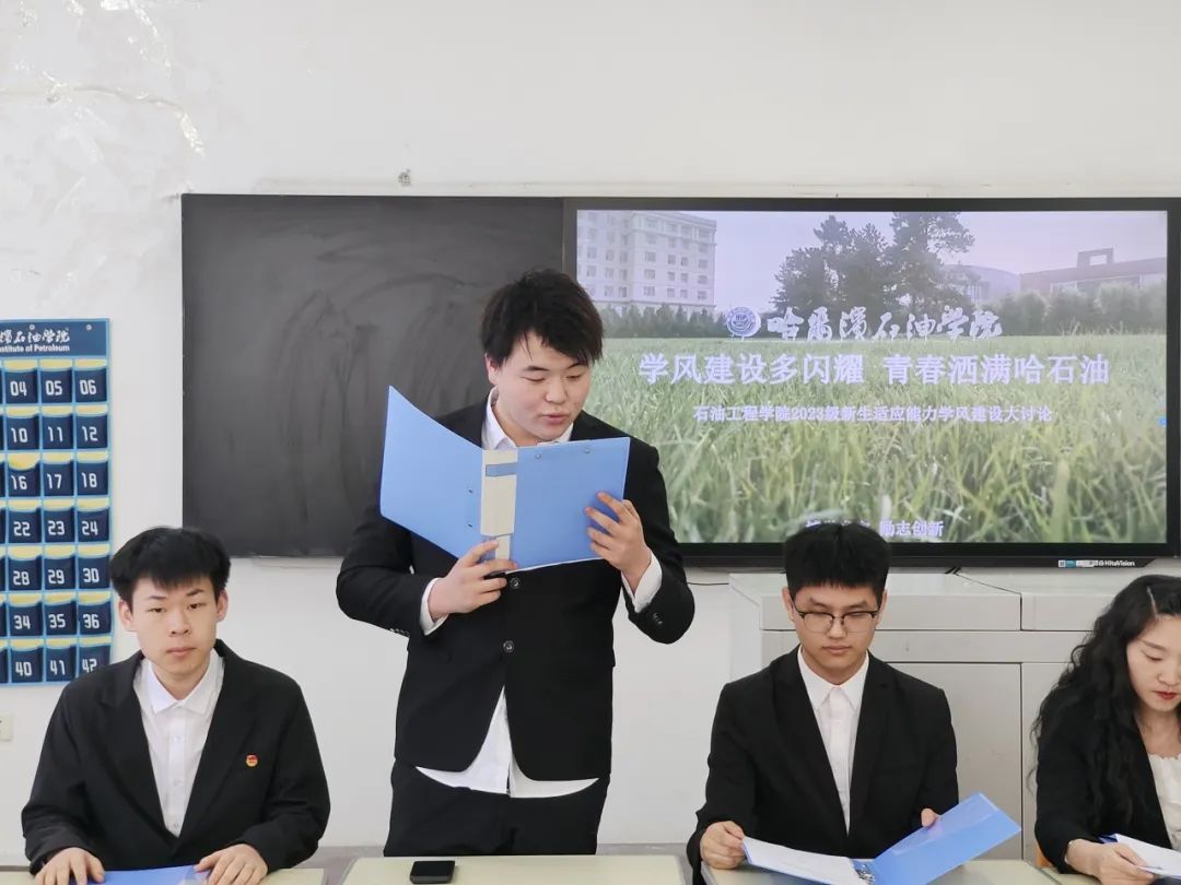 为加强学风建设,进一步构造哈石油优良学风传统,2024年4月9日,我院在主教610开展了以“学风建设多闪耀,青春洒满哈石油”为主题的新生适应性能力学风建设讨论会。此次讨论会由我院2023级辅导员曾海艳发起,我院2023级全体学生代表参会。
