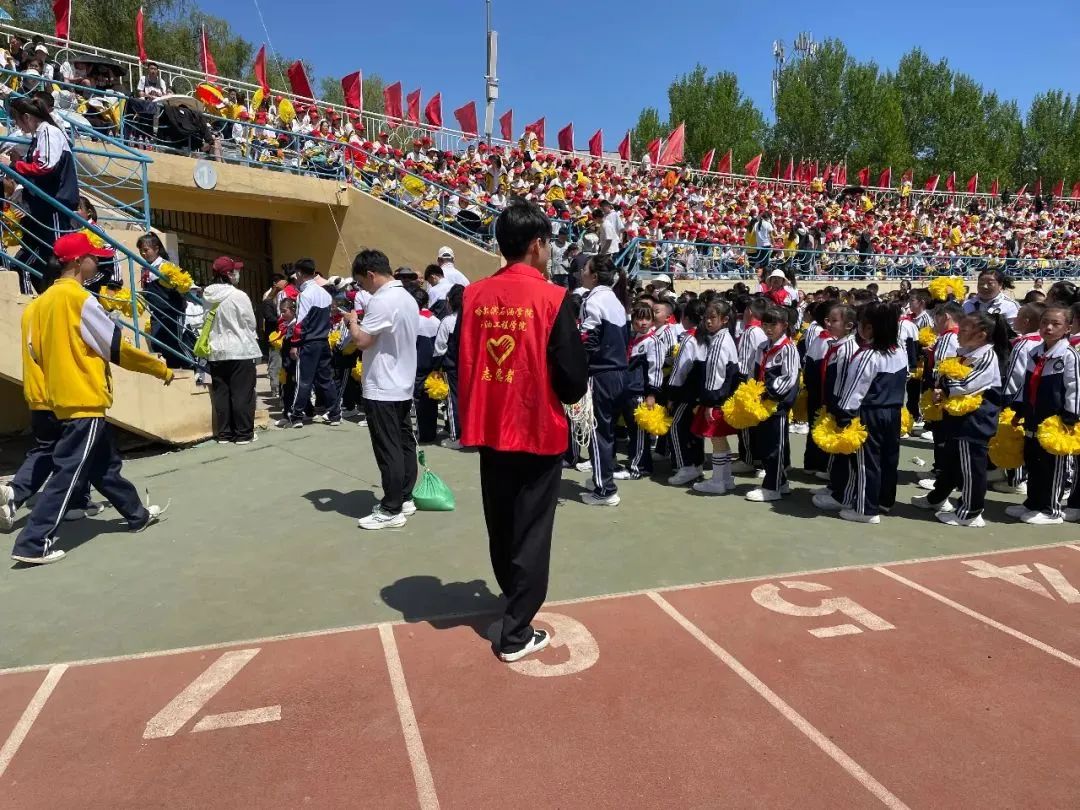 5月16日,哈尔滨新区利民学区首届中小学生田径运动会在哈尔滨师范大学体育场举行。为持续“大中小学思政共同体建设”,开展铁人精神育人工作,我院铁人精神育人志愿服务队在本次运动会提供志愿服务工作。
