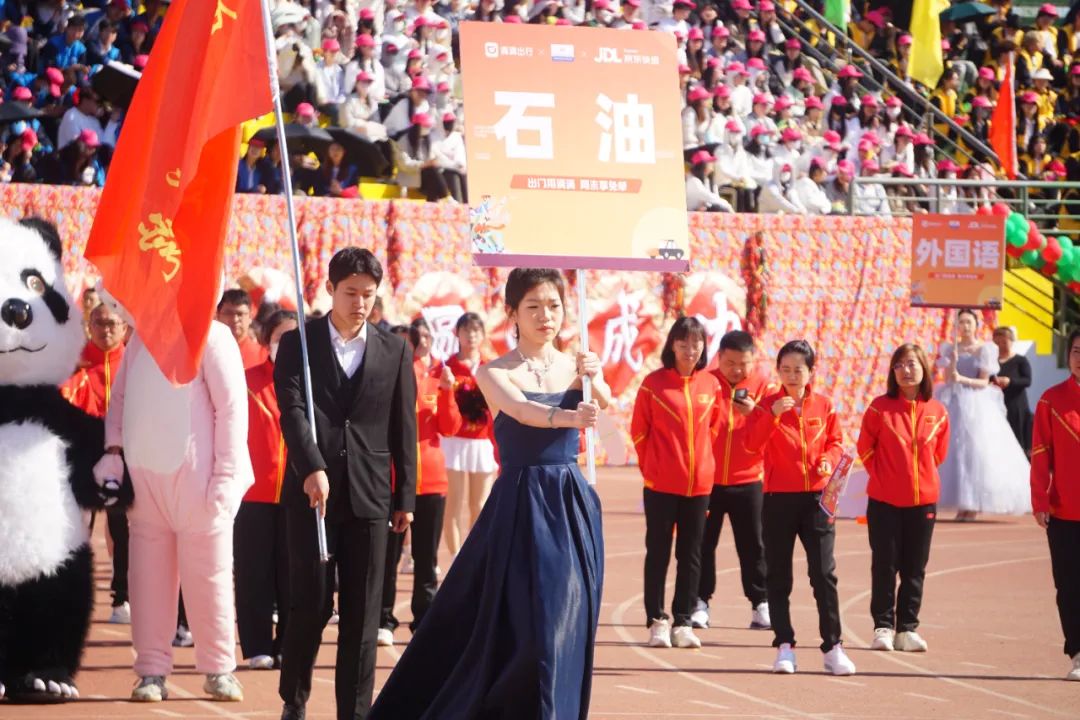 开幕式上,我院方队身着明亮统一的服装,迈着铿锵有力的步伐,神采飞扬地走过主席台,在特色展示环节,在振奋人心的铁人语录声中,方阵队员迅速有序的做出队形变化,并喊出“有条件要上,没有调条件创造条件也要上!”的嘹亮口号,整齐划一的动作,坚定有力的眼神,尽显我院师生昂扬向上的精神风貌与铁人精神深刻的影响力。