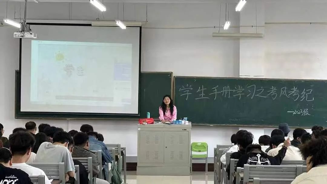 会上,辅导员发言并指出,大学生应该以诚信为准则,树立正确的学习态度,不仅要追求成绩,更要注重学习过程中的品德养成和综合素质的提升。鼓励同学们在学习中勇于面对挑战,遵守学校的考试规章制度,共同营造一个良好的学习环境。考试是对自己真是实力的体现,同学们要遵守考试纪律,严守考试要求,从自身做起,相互监督、实事求是。杜绝抄袭他人,协同作弊的想法,拒绝、抵制不良的考试舞弊行为,严格遵守考试规则,服从考试管理。