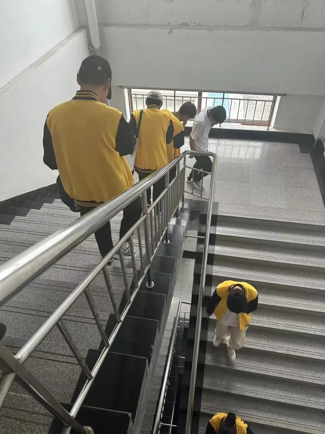 讲座结束后,随着负责人员一声令下,演习正式开始。学院各班同学在正确地引导下,俯下身、猫着腰,按照事先规划好的“逃生”路线,快速、有序地跑出教室撤离到教学楼下,到达指定的安全位置后,负责人立即清点人数,确保无一人遗漏,并查看参与演练学生的情况,所有人员全部安全疏散。整个过程迅速有序,没有丝毫慌乱,达到了良好的预期效果。