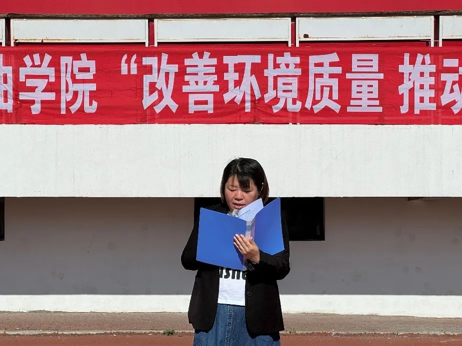 石油工程学院党总支副书记、团总支书记张雪在国旗下发表讲话,发言中强调了环境保护的重要性,指出当前全球面临的环境挑战,呼吁师生从自身做起,从小事做起,积极参与到改善环境质量、推动绿色发展的行动中来。她表示:“绿色发展是时代的呼唤,也是我们每个人的责任。我们要用实际行动践行绿色发展理念,让校园成为绿色发展的典范。”