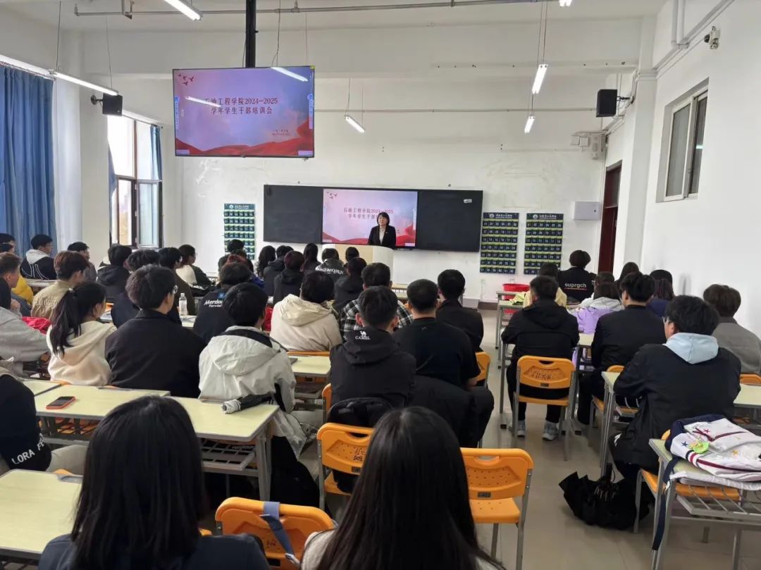 为进一步提升学生干部的综合素质和工作能力,加强学生干部队伍建设,石油工程学院于10月10日举办了 2024 - 2025 学年学生干部培训会。石油工程学院党总支书记孙晓萍、党总支副书记张雪、各年级辅导员、2022级优秀学生干部代表、2024级学生干部参与此次会议。