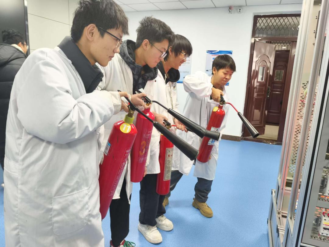 本次包含两项演练项目,在电气火灾演习环节模拟了一起由于实验操作不当引起的电路短路火灾。随着警报声响起,学生们迅速按照预先制定的应急预案行动起来。一部分学生负责切断电源,防止火势蔓延;另一部分学生则使用二氧化碳灭火器进行初步扑救,同时疏散其他同学至安全区域。整个过程中,学生们表现出了良好的应变能力和团队协作精神。