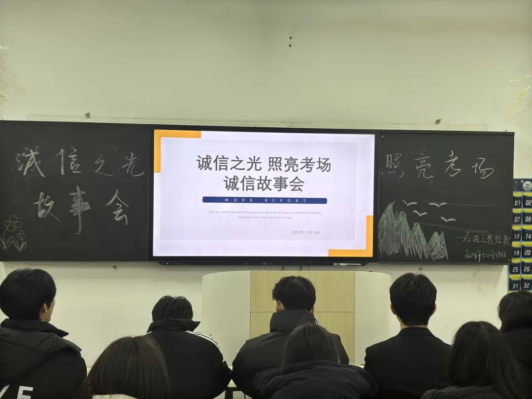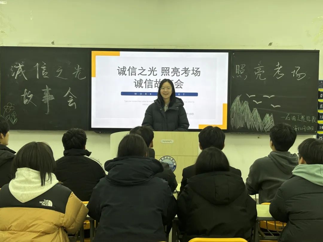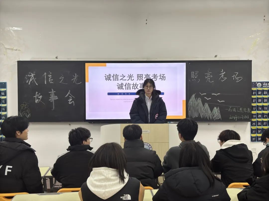 为了确保期末考试的顺利进行,同时弘扬诚信美德,强化学生的诚信意识。石油工程学院于2024年12月18日在主教610教室开展“诚信之光,照亮考场”主题诚信故事会活动。