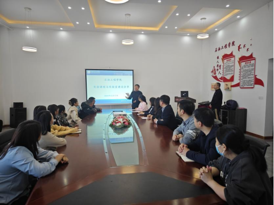 刘主任指出目前我院实验中心现有13个专业实验室,三个专业可开出41项实验,但部分课程尚未开设实验,实验教学体系不完整。诸如石油工程专业现缺少地质、固井完井、注水、压裂等实验教学环节,新能源专业缺少锂电、储能、风光互补等实验教学内容。为切实提升实验教学条件、提高实验教学质量,为省一流专业建设提供有力支撑,2025年拟新建地质实验室、注水工艺实验室,拟增补井下作业工具实验室。针对注水工艺实验室配置一套“注水工艺仿真实验装置”,该装置从结构上主要由注水撬、配水撬、控制柜及操作台四部分组成。在功能上由地面操作,模拟地下工况,数据采集控制系统三部分组成。地质实验室建成后,将填补石油工程专业地质实验空白,该实验室可承担石油工程专业12学时实验教学任务。注水工艺实验室建成后,可承担石油工程及油气储运两个专业《采油工程》、《油气集输》等课程的实验教学任务,可开出注水站注水、配水间配水、分层注水作业过程、井下工况数据采集与分析、注水曲线测定与分析等5个实验项目,10学时的综合性实验。