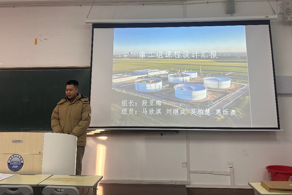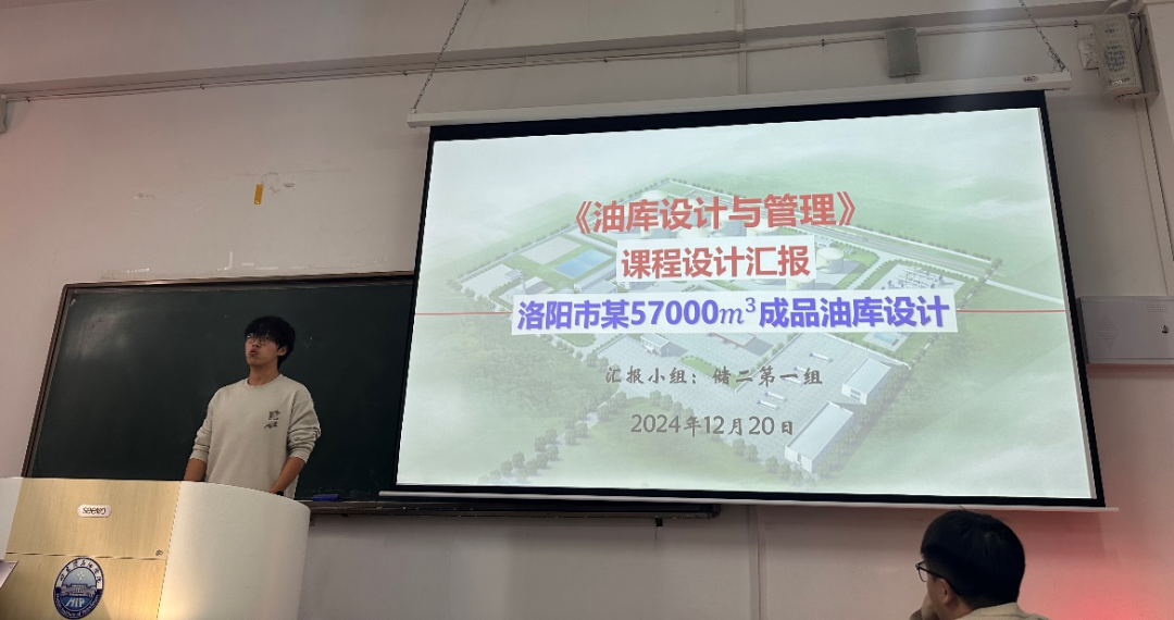 答辩会上,学生们以小组为单位,以随机抽签的方式决定小组汇报顺序和汇报人员。各组汇报人依次用PPT上台展示自己小组的油库设计成果,详细阐述了自己的油库设计思路、设计方法、设计计算结果及设计图纸,现场气氛热烈。