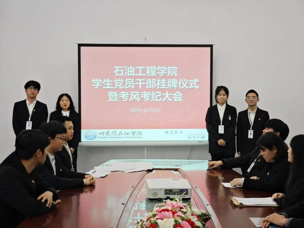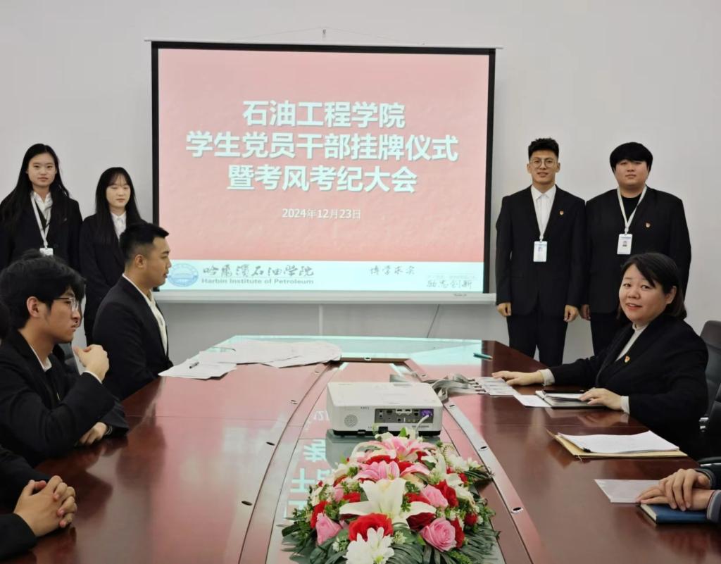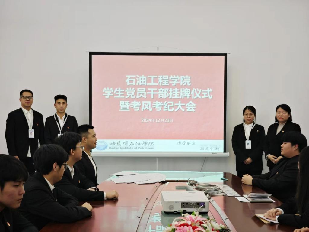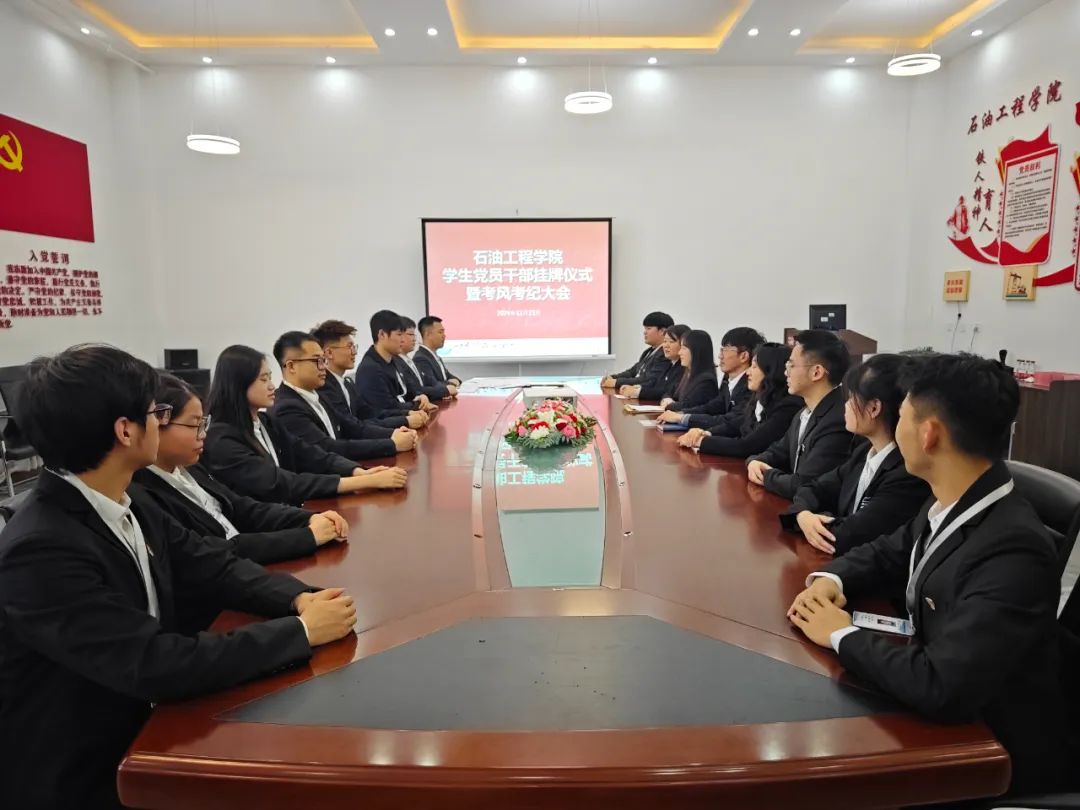 为进一步加强学院学风建设,营造诚信考试氛围,12月23日,石油工程学院开展学生党员干部挂牌仪式暨考风考纪大会。我院党总支副书记张雪、各年级辅导员出席会议,全体学生党员干部参加。学院党总支副书记张雪主持会议。