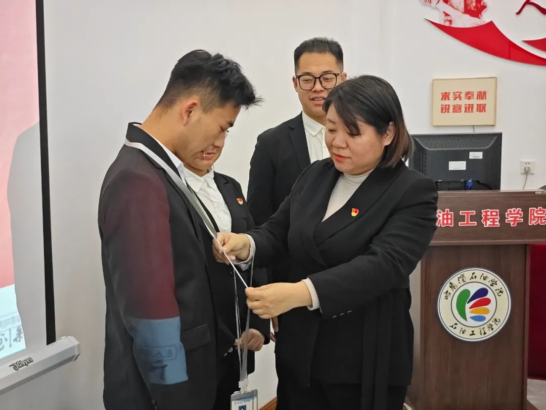 会议伊始,由各张书记和各级辅导员为学生党员干部佩戴“诚信考试”标牌。标牌上不仅有他们的个人信息,还醒目地印着“诚信考试,从我做起”的字样,这既是一份荣誉,更是一种鞭策,让他们时刻明确自己的身份,以身作则,用实际行动坚决抵制考试作弊、维护考试公平公正。