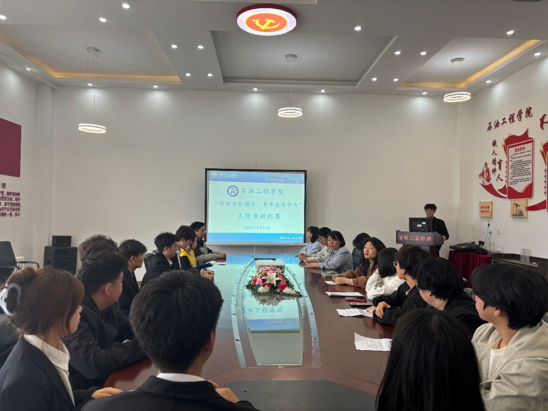 为推进石油工程学院“1+1+1+1+N”赋能计划,全面提升学生干部的综合能力,强化责任意识担当,同时筑牢青年学子国家安全防线。2025年4月18日,石油工程学院在主教811举办了以 “国安方能国兴,青年应当作为” 为主题的演讲比赛。石油工程学院党总支书记孙晓萍、副书记张雪以及学院全体辅导员老师出席本次活动并担任评委、共14名学生干部代表同台竞技。