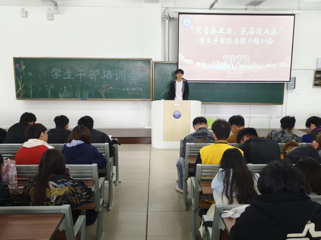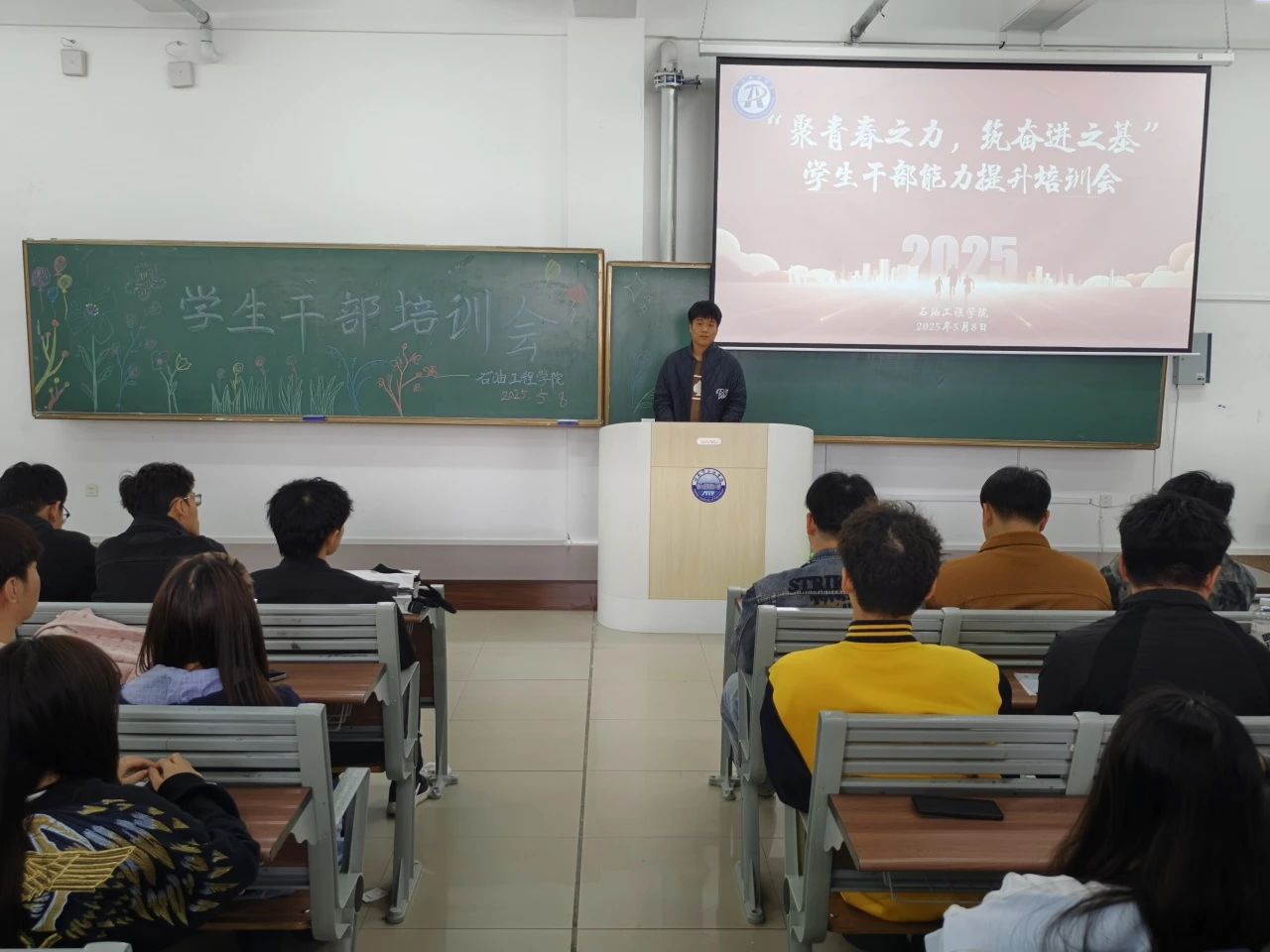为推进石油工程学院“1+1+1+1+N”赋能计划,全面提升学生干部综合能力,强化学生干部队伍建设,增进综合素养与责任意识,石油工程学院于5月8日12:00在主教502举办“聚青春之力,筑奋进之基——学生干部能力提升与责任担当”专题培训会。本次培训由石油工程学院张雪老师动员,院学生会办公室副部孙省言、王薪琪主讲,石油工程学院全体学生干部参与学习。