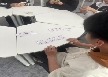 在活动的起始阶段,学习部副部长冯俊祺同学细致地阐述了卡牌游戏的规则。同学们在获得手牌后,须迅速激活自己的知识库存,敏捷地进行字母的组合,以拼出英语四级词汇,并将之展现于桌面之上。当一位同学成功将所有手牌拼组成单词时,便宣告胜利的到来。