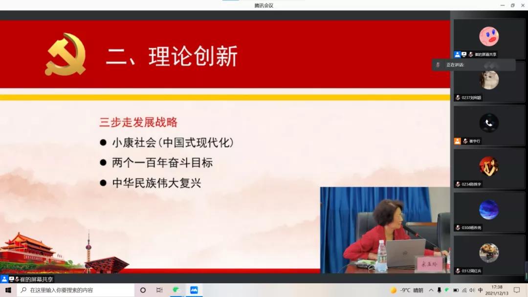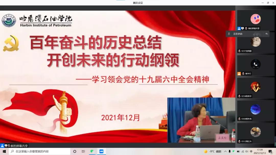 为深刻领会党的十九届六中全会精神实质,引导全院师生学习贯彻党的十九届六中全会精神,增强“四个意识”、坚定“四个自信”、做到“两个维护”。切实把思想和行动统一到全会精神上来。12月13日-19日晚,我院分别集中组织观看伟德官网马克思主义学院院长宋玉玲老师主讲的《百年奋斗的历史总结,开创未来的行动纲领》党课视频。